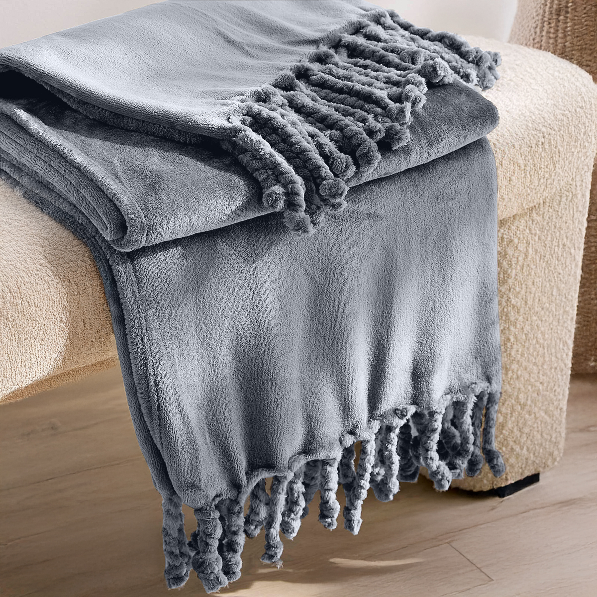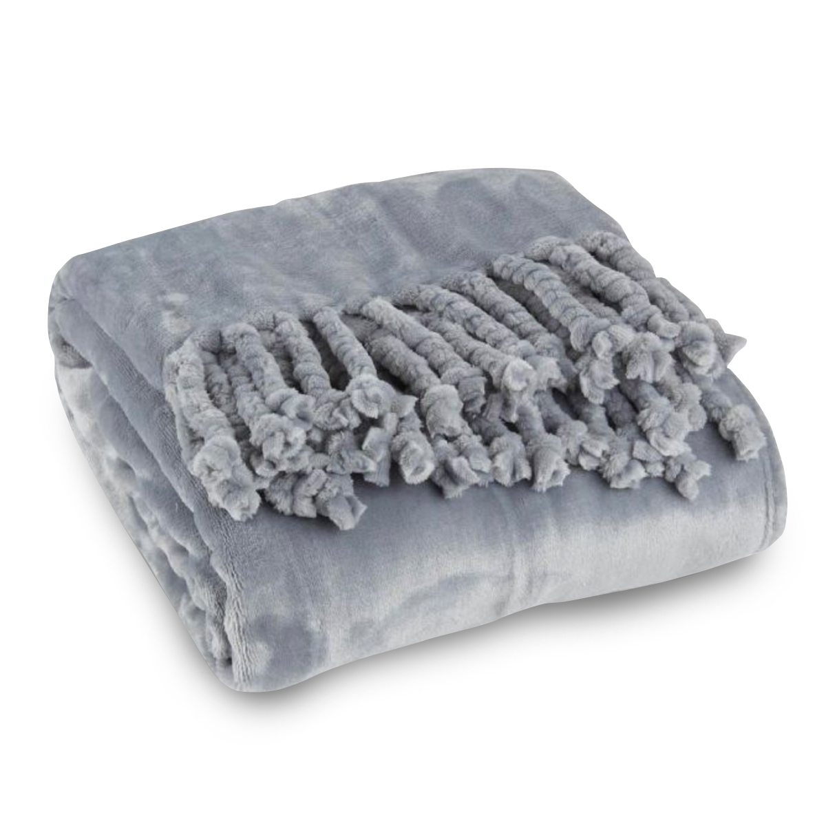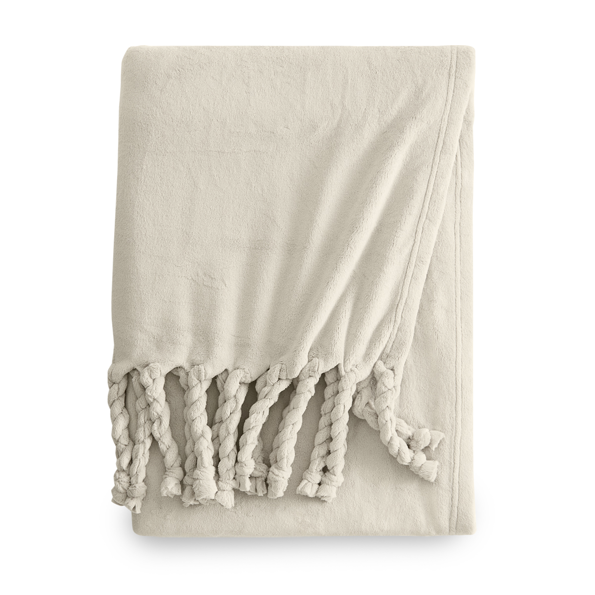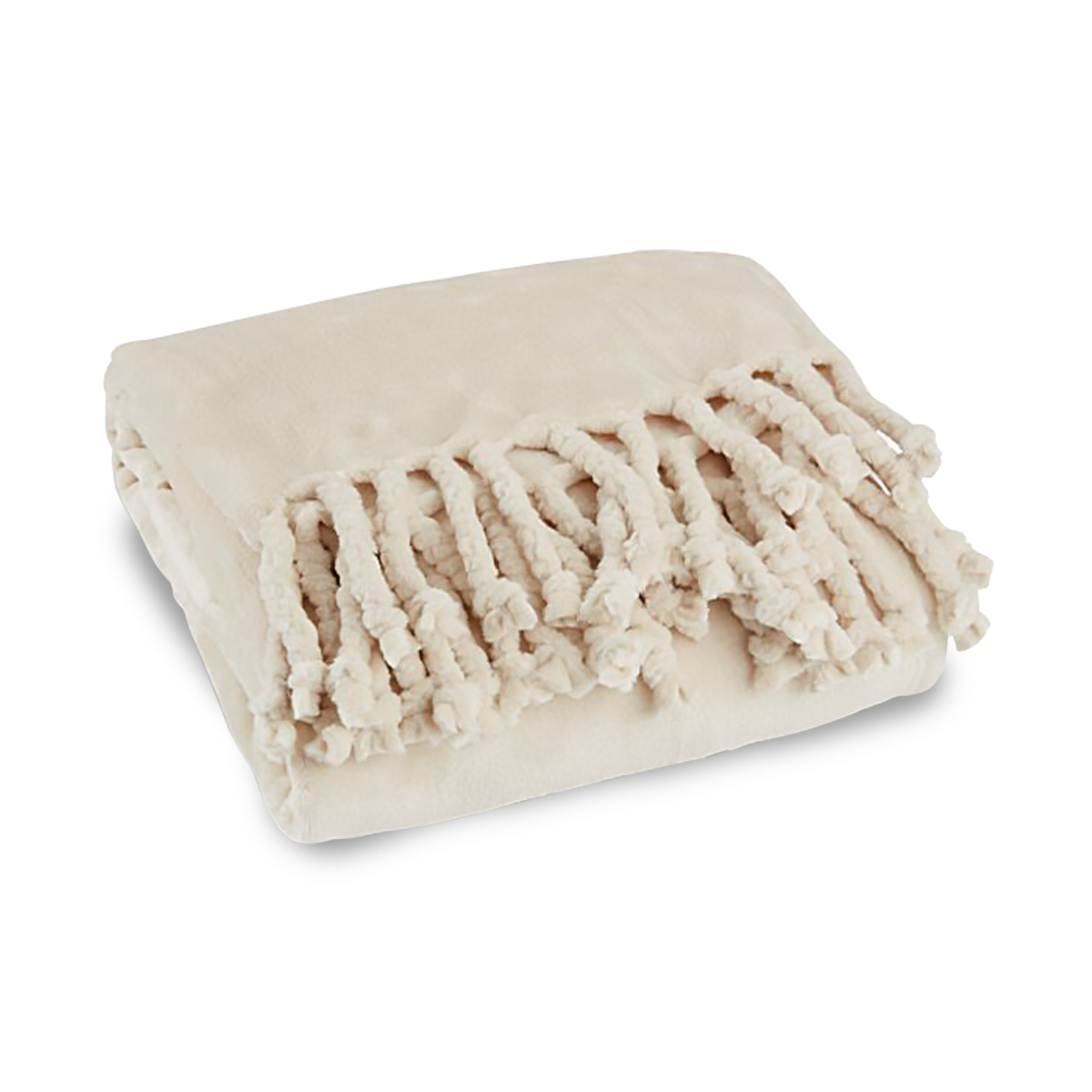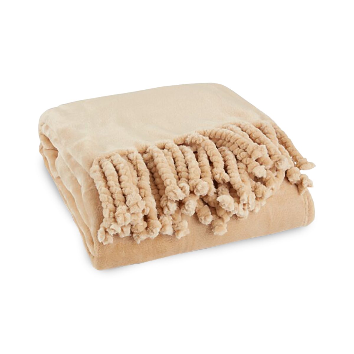 שמיכת קורל פליז עם פרנזים מגולגלים בצד הצר,